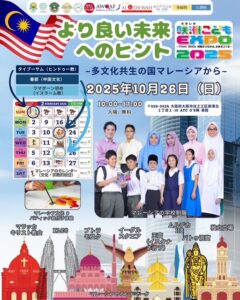 外国人の皆さんによる文化紹介等のイベントをご紹介 2025年11月1日・29日(土)アフリカン&ドゥンドゥンダンスレッスン2025年10月26日(日)より良い未来へのヒント 〜多文化共生の国マレーシアから〜2026年1月10-11日(土日)「やってみなはれ!大阪150年物語」2025年9月21日(日)マレーと大阪をつなぐ文化の絆「ヌサンタラ桜」2025年9月28日(日)台湾中秋節 文化体験講座2025年11月23日(日)パレスチナ文化の日2025年10月11日(土)多文化交流サロン「インドネシア」2025年8月29日(金)ベナン ナショナルデー式典ご招待 @万博2025年9月27日(土)結んで、学んで、味わう中秋節2025年8月31日(日)マレーシアの独立記念日「ムルデカの意味」2025年8月25日(月)大阪アフリカビジネスフォーラム2025 2025年8月13日(水)~9月28日(日)アフリカ月間 in 神戸 AFRIKA meets KANSAI 20252025年8月10日(日)夏休み : マスジドで国際交流!マレーシア文化とマレーシアの大学生に出会おう!2025年8月24日(日)「ポーランドのお茶とデザート」2025年8月2日(土)多文化交流サロン「ネパール・カトマンズ」 2025年8月20、21、22日(水木金)「アフリカ系アメリカ文化を体験しよう!」2025年8月2日(土)「アイハウスde多文化体験2025」開催!2025年9月20日(土)「京劇の世界」舞台「大阪150年物語」出演者募集2025年6月7日(土)マレーシアの日2025年6月14日(土)多文化交流サロン「モンゴル・ウランバートル」 2025年5月18日(日)大阪京劇団 ドレス リハーサル 見学会2025年5月25日(日)群島の魂:インドネシアを探る2025年5月31日(土)端午節文化研習2025年5月16日(金)スパニッシュダンス フェスタ2025年5月11日(日)ケニアのお話し会+お菓子作り2025年4月26・27日(土・日)ネパールフェスティバル関西2025年4月29日(月・祝)京劇・国風・美術・文化芸術交流会2025年4月17日(木)スタート 美姿勢ビューティダンス2025年4月19日(日)西アフリカ・ナイジェリアのイースター2025年4月20日(日)日中文化交流の春フェスin大阪2025年5月3日(土)、4日(日)高槻ジャズストリート アフリカエリア2025年4月19日(土)ホーショール作り と モンゴルお話しの会2025年3月1日~ 毎週 金・土・日 ラマダーン 2025 イフタール in 大阪2025年3月2日(日)マレーシア文化遺産:糸、インク&遊び2025年2月24日(月祝) 現地で感じたサウジアラビアの今2025年3月5日(水)春節文化訪問団2025年2月9日(日)ワンワールドフェスティバル20252025年2月2日(日)大阪春節祭2025年2月16日(日)バティック&バイツ:マレーシアの伝統を発見2025年2月2日(日)モンゴルの旧正月に食べるボーズをつくる会2025年1月26日(日)ベトナムの正月 テトを楽しもうEXPOアリーナ「スパニッシュ ダンス フェスタ」出演者募集2025年1月26日(日)国境を越えて:文化を一緒に祝おう2025年1月13日(月祝)「初心者のための上方伝統芸能ナイト」 フランス語公演2024年12月31日(火)大晦日の「初心者のための上方伝統芸能ナイト」英語または英語字幕付き 大阪公演2025年1月22日(水)多文化 Opinion Exchange〜外国にルーツを持つ子どもの居場所づくり2024年12月7日(土)アフリカ 大忘年会2024年12月22日(日)アラビア文化交流会2024年12月7日(土)京劇・国風・美術・文化芸術交流会