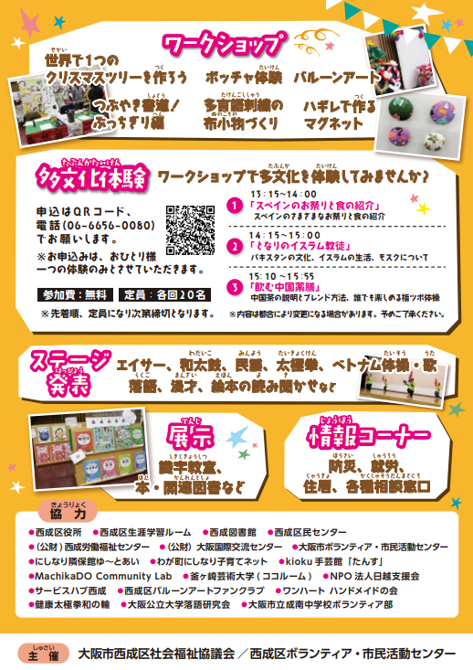 申し込みは06-6656-0080、または下記チラシ内の二次元コードから