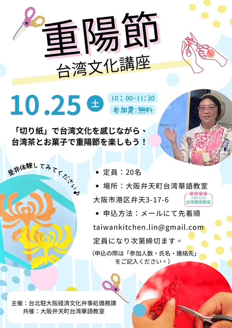 2025年10月25日(日)台湾重陽節 文化体験講座