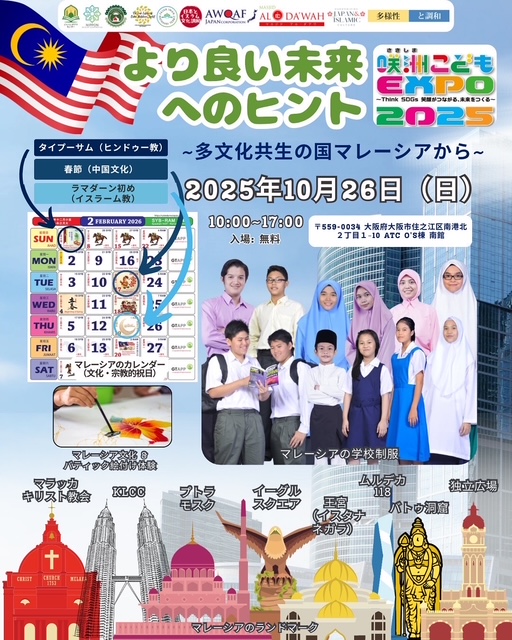 「咲洲こどもEXPO2025」の一環として、マレーシアの多文化共生をテーマにした展示・体験イベントが登場。多民族・多宗教国家として発展を続けるマレーシアの魅力や文化を、楽しく学びながら体験できる貴重な機会です。
