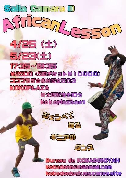 達人サリヤ カマラさんのアフリカンレッスンのお知らせです。