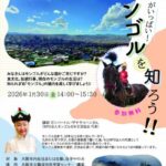 2025-12-22 / 最終更新日 : 2025-12-22 iheditor7042 2025年度 2026年1月30日(金)「魅力がいっぱい!『モンゴル』を知ろう」 達人:ザヤさんのイベントです 【イベント情報】ネットワーク型市民セミナー「魅力がいっぱい!『モンゴル』を知ろう」を開催します! みなさんはモンゴルがどんな国かご存じですか? 食文化、伝統行事、現在のモンゴルの生活は? 知 […]